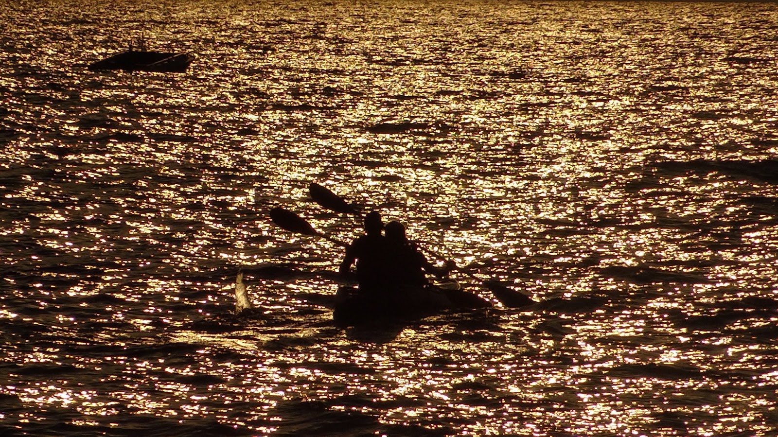After all of us got on to the boat, we were taken to another spot where dolphins were expected to show up. But they decided not to! So we headed back to the shore after a short wait. The view as we neared the shore was very beautiful with a thicket of coconut trees for a backdrop.